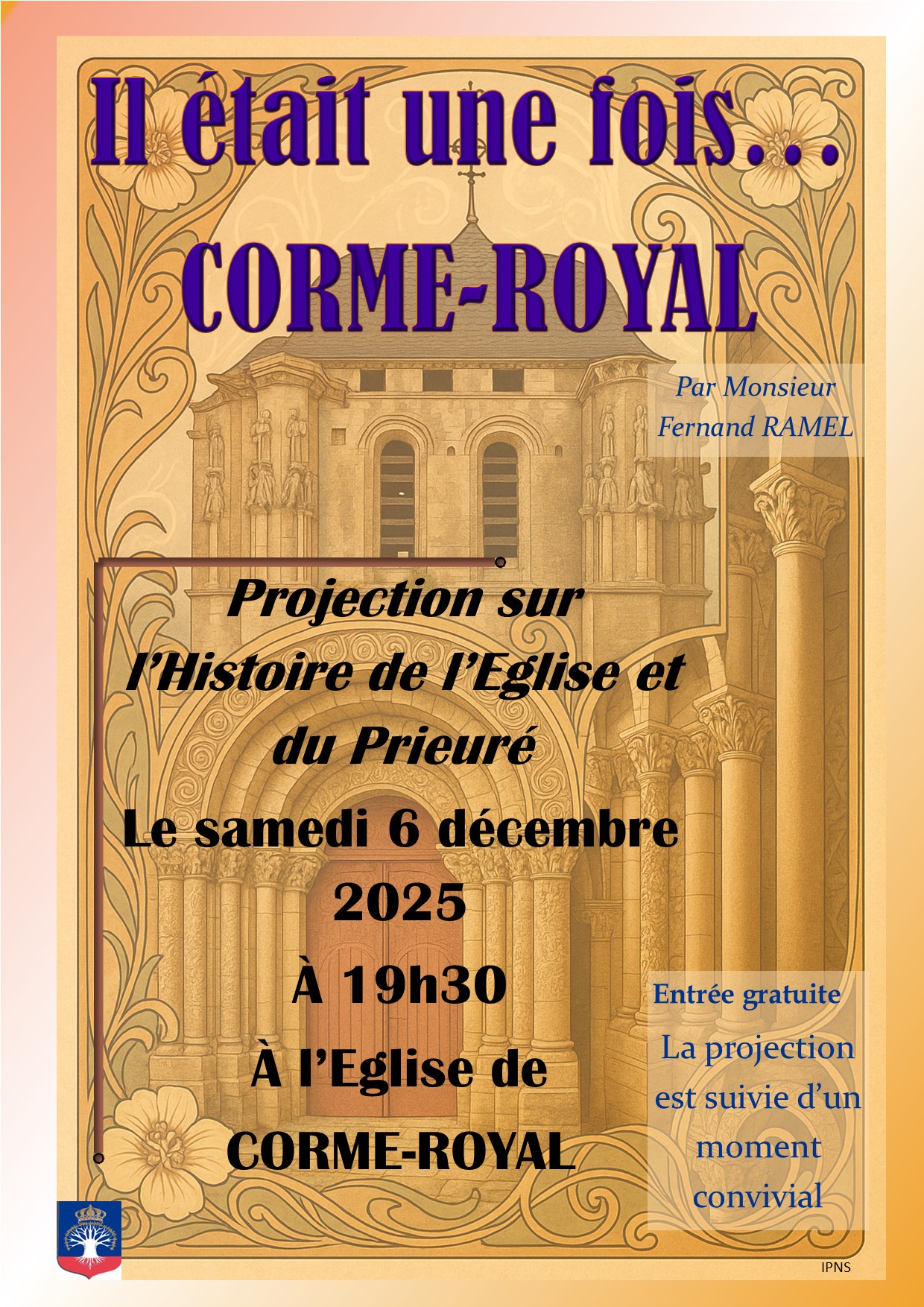 Projection sur l’Histoire de l’Eglise de Corme-Royal